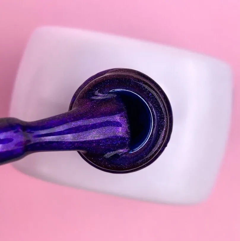 Color Cat Eye is a perfectly pigmented gel polish that can be applied in one or two thin layers. It does not streak during application, self-levels easily, and has a medium-thick consistency. The product contains tiny metallic particles that react to the magnet, moving in the uncured layer of the coating to create a magical reflective effect in the design.
