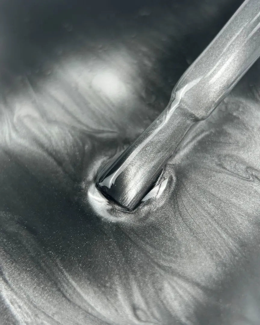 Color Cat Eye is a perfectly pigmented gel polish that can be applied in one or two thin layers. It does not streak during application, self-levels easily, and has a medium-thick consistency. The product contains tiny metallic particles that react to the magnet, moving in the uncured layer of the coating to create a magical reflective effect in the design.